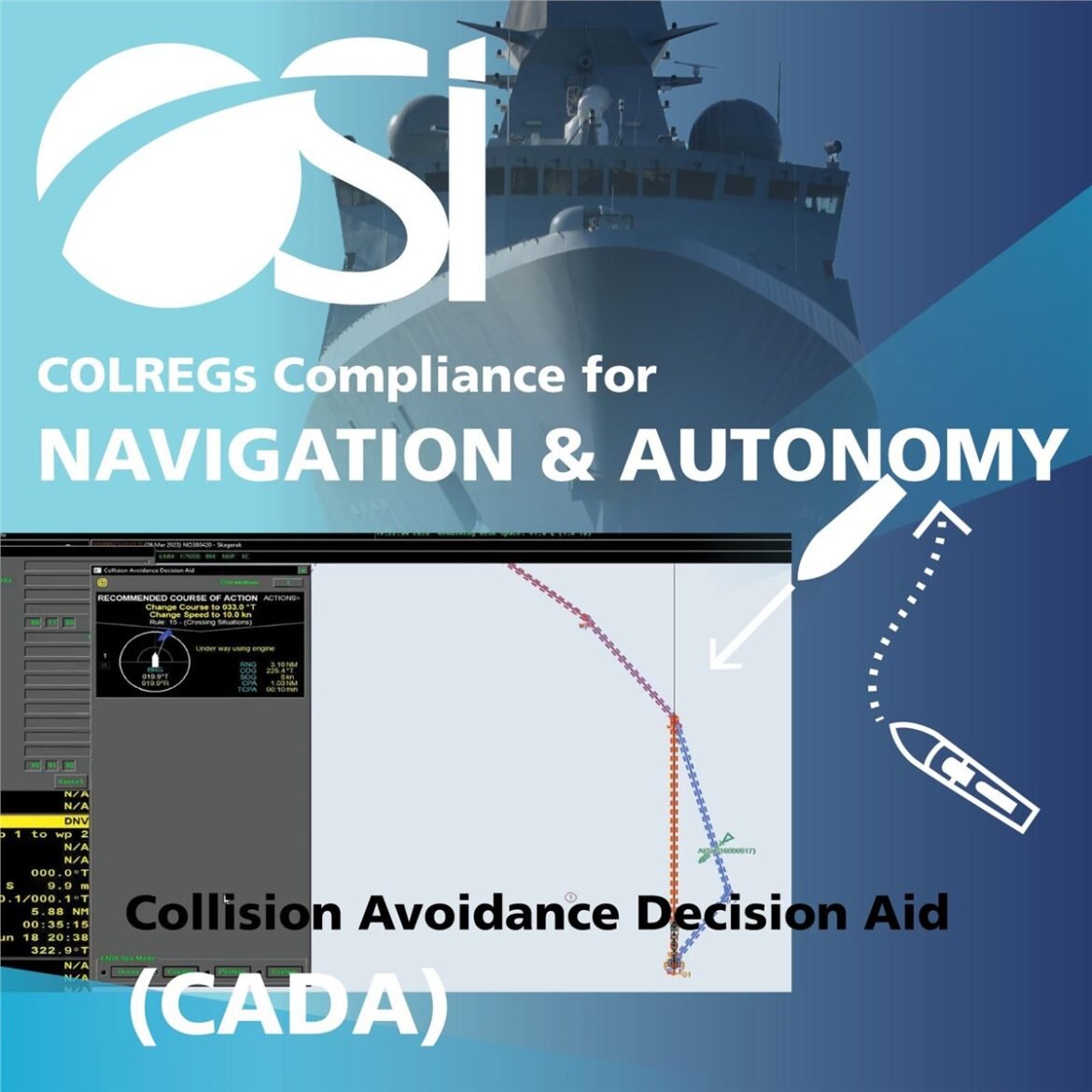 During these trials, collision avoidance scenarios tested OSI’s Collision Avoidance Decision Aid (CADA) capability, a module of the company’s leading Electronic Chart Precise Integrated Navigation System (ECPINS).