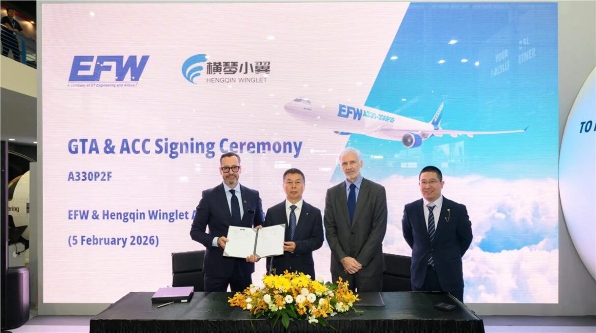 Elbe Flugzeugwerke (EFW), the joint venture between ST Engineering and Airbus, has secured a contract with Hengqin Winglet Aircraft Technology to convert A330 passenger aircraft into freighters. The agreement marks the Chinese lessor’s first participation in EFW’s A330 passenger-to-freighter (P2F) programme and strengthens EFW’s footprint in one of the world’s fastest-growing aviation markets.